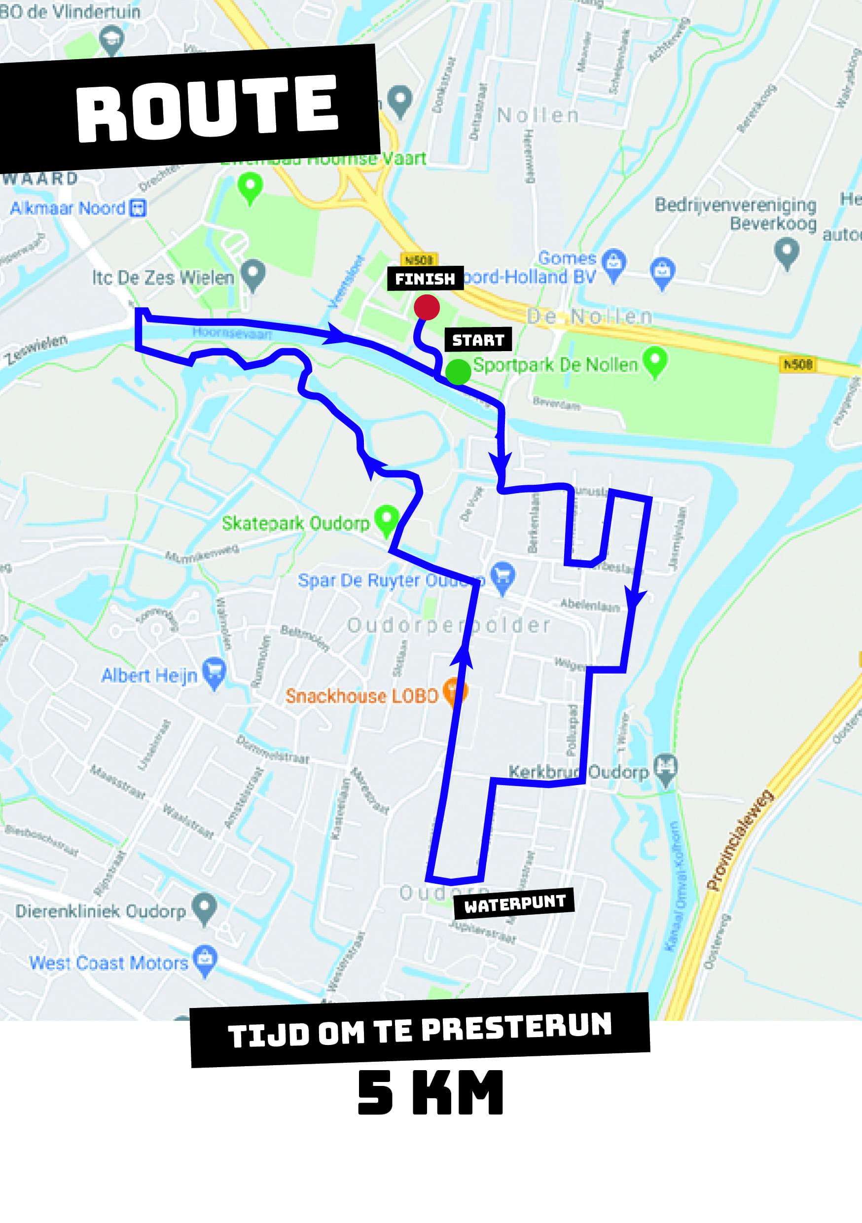 Start en finish vinden plaats bij De Vaart, Sportpark de Vaart, Hoornseweg 28, Alkmaar.